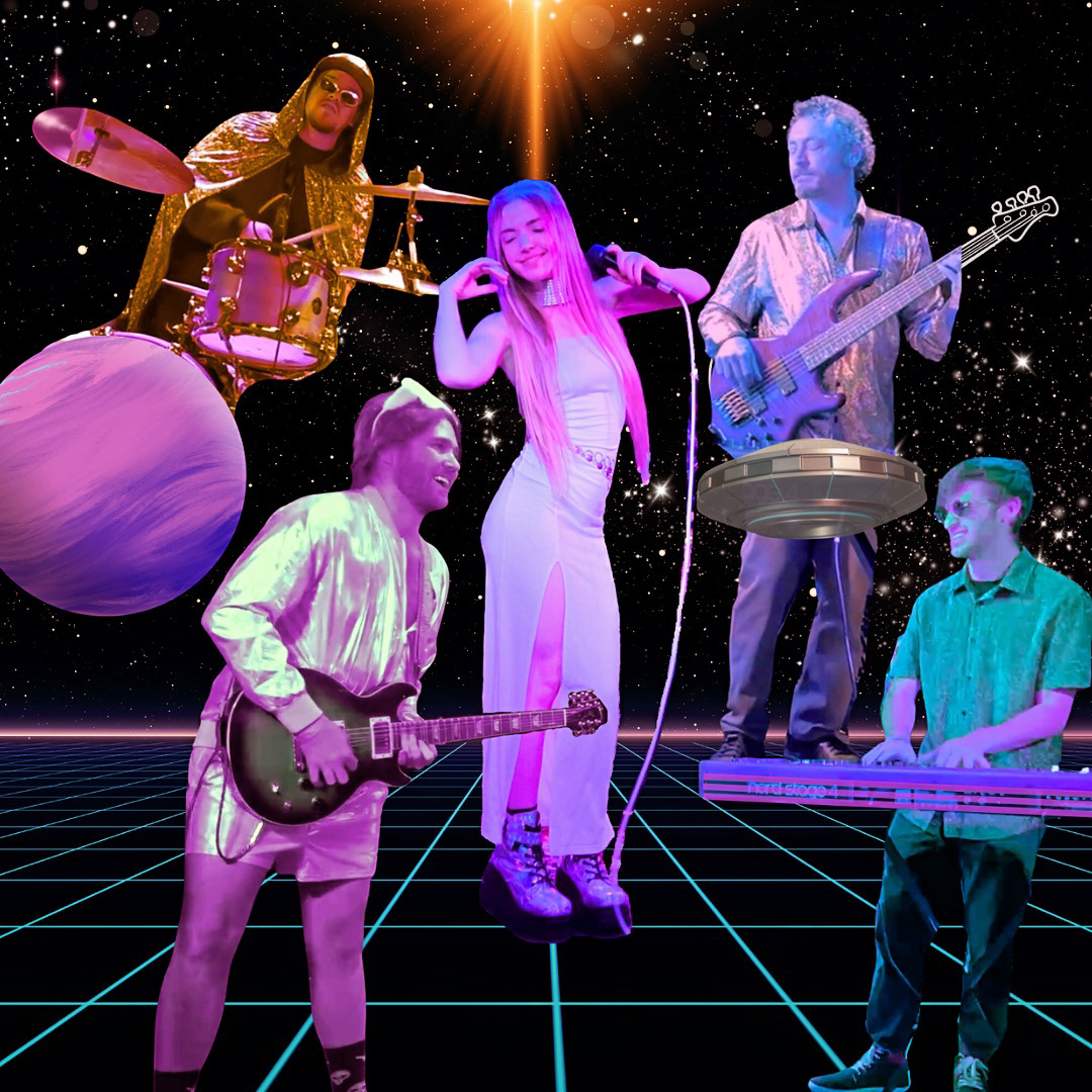MASTER BEAT blasts into the future/past on an other-worldly musical odyssey. Santa Cruz’s tingly new dance sensation blends psychedelic disco funk, driving beats, and powerful ADHD-infused female vocals that are sure to get you out of the house, then up and away on the cosmic dance floor. Curious? Come aboard the MASTER BEAT rocket ship! The band’s technicolor catalog of original music paints themes of extraterrestrials, sparkles, dancing your [insert body parts] off, and the duality of expressing individuality as part of a greater universal loving collective.